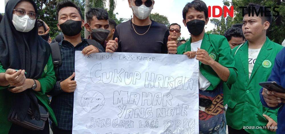 Mataram, IDN Times - Gelombang penolakan wacana penundaan pemilu dan perpanjangan masa jabatan presiden menjadi 3 periode merembet ke Provinsi Nusa Tenggara Barat (NTB). Ratusan mahasiswa di Kota Mataram dari berbagai elemen menggelar aksi unjuk rasa di depan Kantor DPRD NTB dan Kantor Gubernur NTB, Senin (11/4/2022).