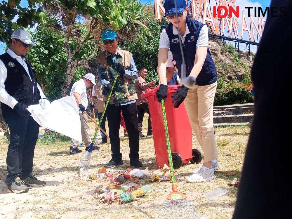 Lombok Tengah, IDN Times - Menteri Pariwisata (Menpar) Widiyanti Putri Wardhana mencanangkan gerakan wisata bersih di Pantai Kuta, Kawasan Ekonomi Khusus (KEK) Mandalika, Lombok Tengah, Nusa Tenggara Barat (NTB), Kamis (24/4/2025).